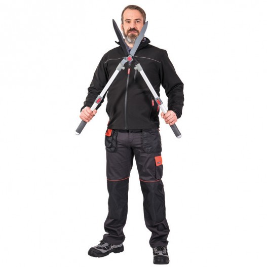 9 buzunare, dintre care 6 cu inchidere prin arici. Buzunar pentru telefonul mobil. Cusaturi triple. Talie ajustabila. Inel fixare cheie. Banda suport ciocan. Buzunare pentru genunchiere. Portiuni intarite pe buzunare si genunchi, dintr-un material rezistent la uzura (poliester 300D). Standard EN ISO 13688.