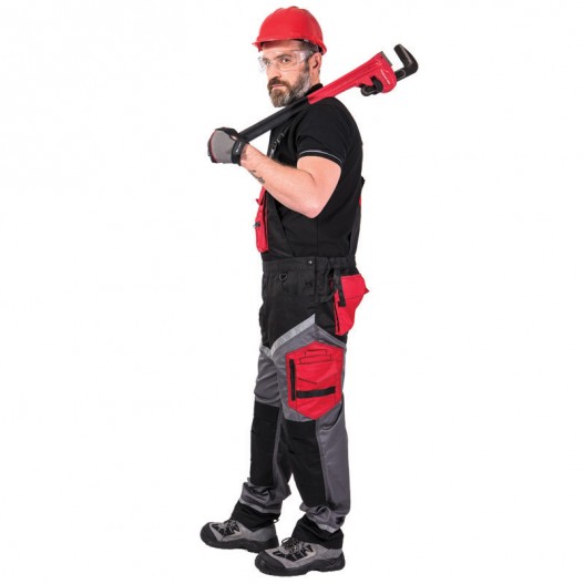 18 buzunare, din care 3 cu inchidere prin fermoar. Buzunar pentru telefonul mobil. Orificii de ventilatie pentru a asigura o aerisire sporita. Benzi reflectorizante pentru cresterea vizibilitatii utilizatorului. Cusaturi triple. Talie ajustabila. Bretele ajustabile. Inel fixare cheie. 2 inele pentru scule. 2 inele pentru rulete. Buzunare pentru genunchiere. Design modern si atractiv. Model dotat cu port ecuson. Standard EN ISO 13688.