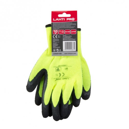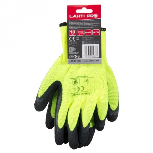 Material: acril, latex. Invelis din latex pe portiunea palmei si a degetelor cu o structura poroasa pentru asigurarea unei rezistente ridicate la abraziune si a unei aderente accentuate. Ofera protectie termica si asigura un confort ridicat. Versiune lunga cu mansete elastice. Utilizari diverse in ateliere, depozite, constructii, transporturi etc. Standard: EN 420.