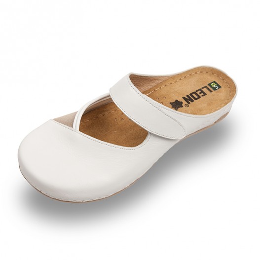 Pentru a beneficia de un mers usor si natural, saboti medicali leon 953 de culoare alba pentru picior cu hallux valgus si/ sau monturi din piele naturala, cu talpa ortopedica si manopera de inalta calitate va asigura toate avantajele unui produs reusit. Paseste cu incredere in Leon pentru a asigura picioarelor tale confortul de care au nevoie!