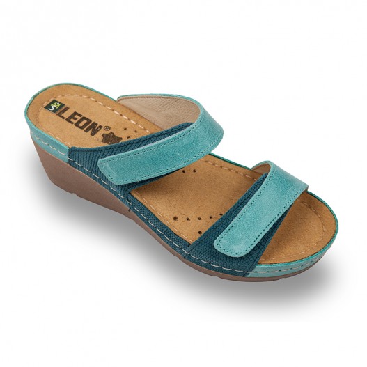 Pentru a beneficia de un mers usor si natural, papucii medicali 1040 turcoaz, din piele naturala, cu talpa ortopedica si manopera de inalta calitate va asigura toate avantajele unui produs reusit. Paseste cu incredere in Leon pentru a asigura picioarelor tale confortul de care au nevoie!